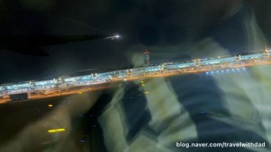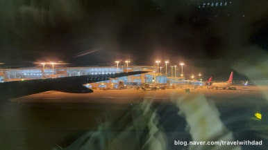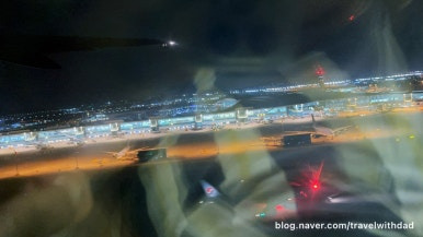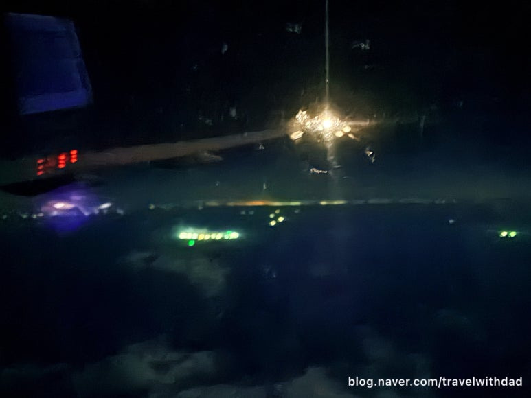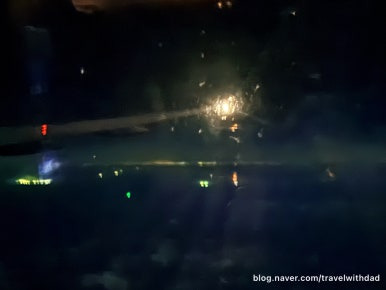드디어 탑승이 완료된 후 푸시 백을 했다. 이제 공항은 완전히 어두워져 터미널 이외에는 빛이 없는 것 같이 보였다.