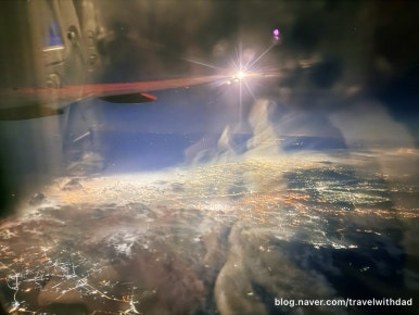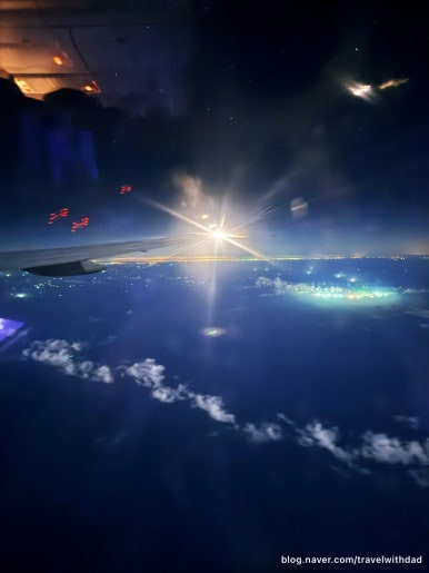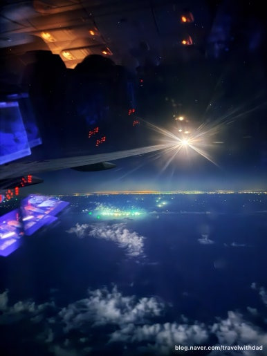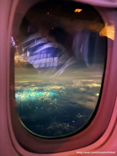 베트남 상공에 들어온 후부터 창밖을 내다보면 간간이 희미하게 빛나는 불빛을 볼 수 있었다.