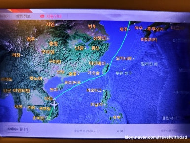 기내식을 먹고 나니 제주를 지나 대만을 향해 가고 있었다.