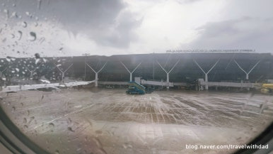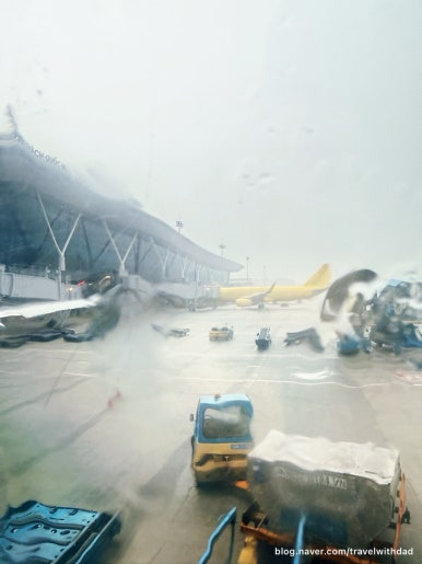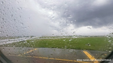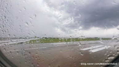 밖에 비는 부슬부슬 내리고 있고 있는 중 우리 비행기는 푸시 백을 했다.