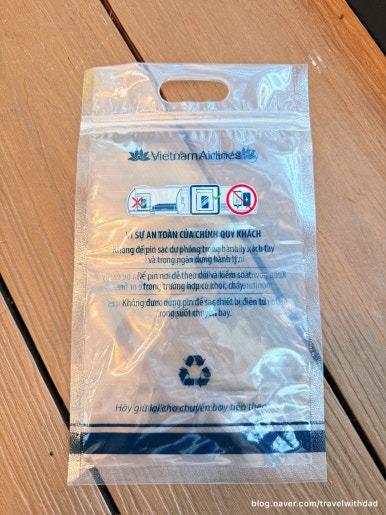 베트남 항공은 스카이팀 항공사로 베트남 항공을 이용했을 때 대한항공 마일리지를 적립할 수 있었다. 그런데 우리가 구매한 탑승권이 마일리지 적립률은 0 이었다. 체크인을 할 때 보조배터리를 넣을 수 있는 작은 지퍼백을 주었다.