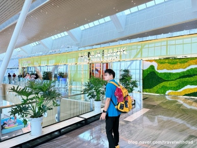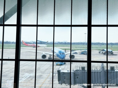 넓은 지붕을 받치고 있는 기둥은 꼭 대나무 모양 같았다. 우리는 한 층 위로 올라가 보았다. 무엇이 있나 궁금했다. 올라가니 라운지 같은 것들이 있던 것 같았다. 우리는 베트남 항공을 이용할 때는 혜택이 없으므로 라운지 입구 구경만 하고 바로 아래층으로 다시 내려왔다.