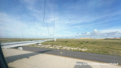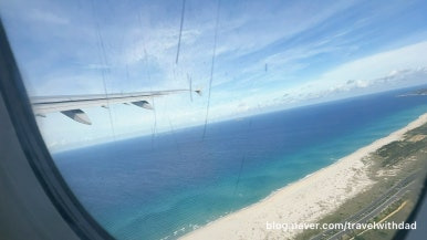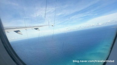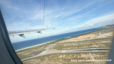 비행기가 떠오르자 푸른 바다가 눈에 들어왔다. 활주로의 끝은 해변과 맞닿아 있는 것 같았다.