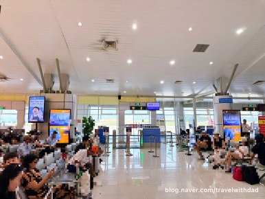 체크아웃을 12시에 하고 로비에서 기다리니 픽업 기사님이 왔다. 레디슨 블루 리조트에서 공항까지는 10분 정도밖에 걸리지 않았다. 국제선과 국내선 터미널이 있는데 우리는 국내선을 탑승해야 하기에 국내선 터미널로 왔다. 1층에 바로 들어서니 체크인 카운터가 보였다. 바로 체크인이 되는지 궁금해서 카운터에 가니 조금 있다 체크인을 한다고 했다.