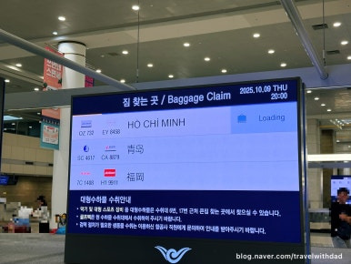 출국심사를 받는데 사람이 왜 그렇게 많은지 출국심사를 받는데도 대략 30분이 넘게 걸렸다. 사람이 너무 많이 줄이 주는 것 같은 느낌이 들지 않았다. 운이 좋아 30분 정도지 이상한 줄에 서면 30분보다 더 걸리는 것 같았다. 수화물 재검색이 필요한 사람은 모니터에 편명과 도착지, 그리고 이름이 떴다.