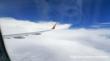 적란운을 피해 위로 올라오니 구름층이 얇아졌다. 비행기가 올라가라 수록 덜 흔들렸다.