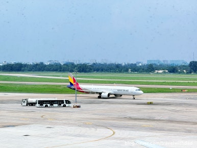스타얼라이언스 도장을 한 비행기는 어느 항공사인지 궁금해 계속 보고 있으니 EVA 항공사의 스타얼라이언스 도장이었다. 그리고 우리가 탈 아시아나 항공 비행기는 막 도착해서 게이트로 향하고 있었다.