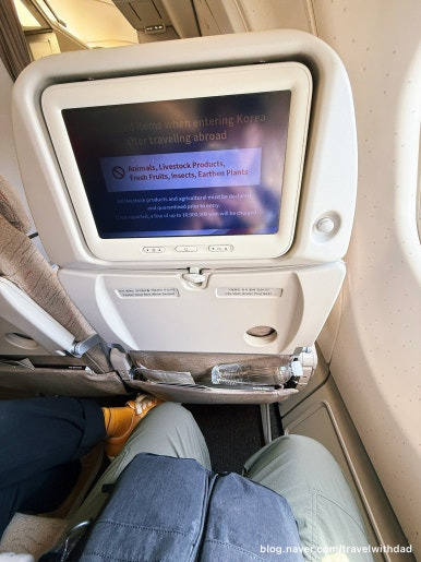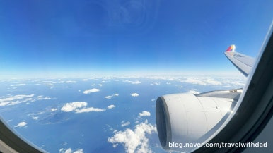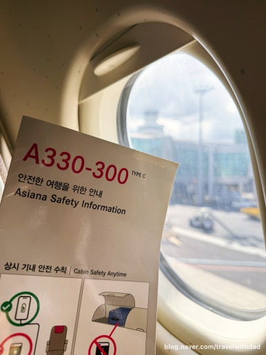 오버헤드 빈에 짐을 넣은 후 자리에 앉았다. 올 때와 같은 A330-300 이었다. 짧은 비행시간이지만 작은 비행기보다는 널찍해서 좋았다.