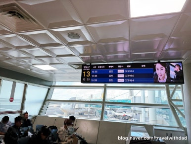 보안검색을 할 때 시간이 오래 걸릴까 걱정이 되어 탑승 한 시간 전에 라운지에서 나와 보안검색을 받았다. APEC 때문에 시간이 오래 걸릴 거라 생각했는데 너무 빨리 보안 검색을 받고 에어 사이드로 들어와서 조금 당황스러웠다. 우리가 탈 비행기는 13번 게이트에서 탑승을 준비하고 있었다. 발권 카운터에서 발권을 기다리는 사람들보다 에어 사이드에 있는 사람이 곱절은 많았다. 앉을 자리가 없어서 빙빙 돌다 겨우 자리를 찾았다.
