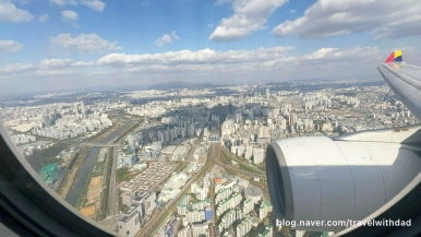 수많은 건물들이 보였다. 서울 남부 상공을 지나 김포공항으로 향하고 있었다.