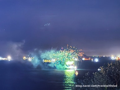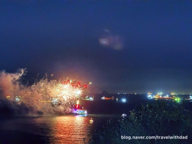 케이블카를 탈 생각은 없지만 운동 삼아서 케이블카 타는 곳까지 걸어갔다. 가는 도중 선상 위에서 하는 불꽃놀이를 볼 수 있었다.