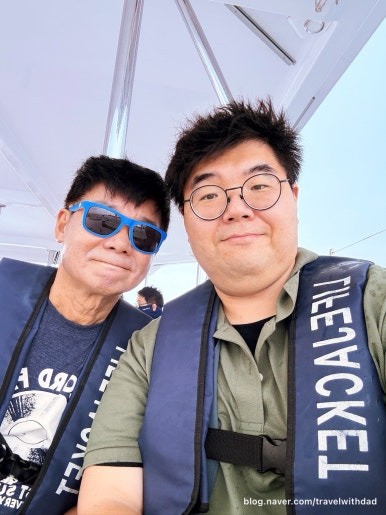 일단 출항하기 전까지는 비가 내리지 않았다. 약간의 파도가 있었지만 그런대로 멀미는 하지 않았다.