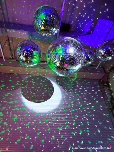 안에 들어오니 천장의 미러볼이 빙글빙글 돌고 있어 밖과는 전혀 다른 세상이었다.