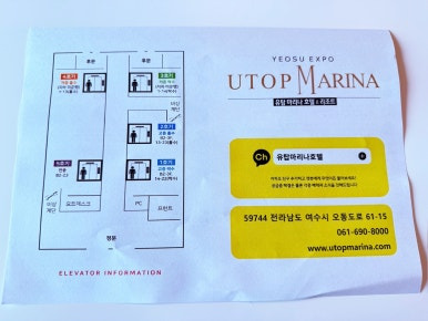 호텔 엘리베이터에는 호텔 내 시설물을 안내하는 여러 가지 홍보 포스터가 붙어 있었다.