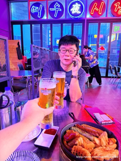 저녁 식사는 호텔 안에 있는 여수 야시장에서 먹기로 했다. 밥집이기보다는 호프집에 가까웠다.
