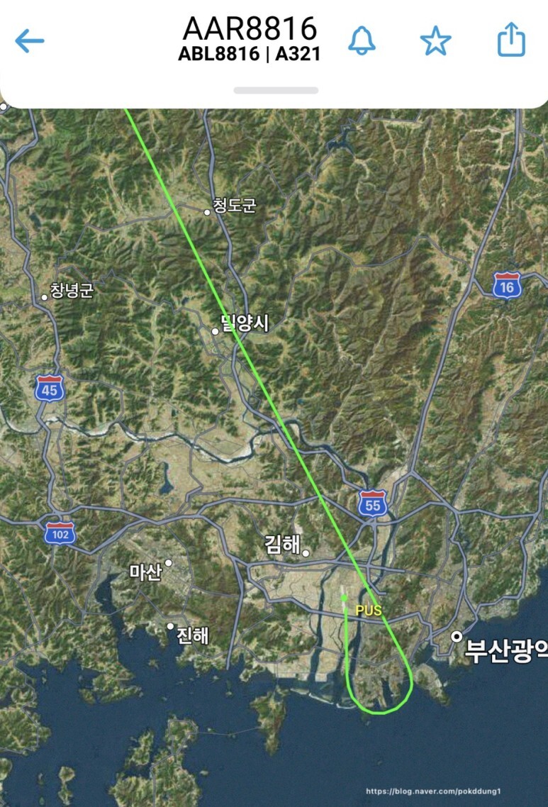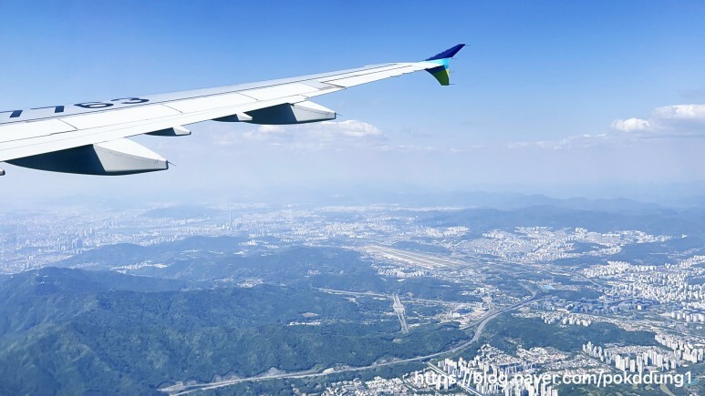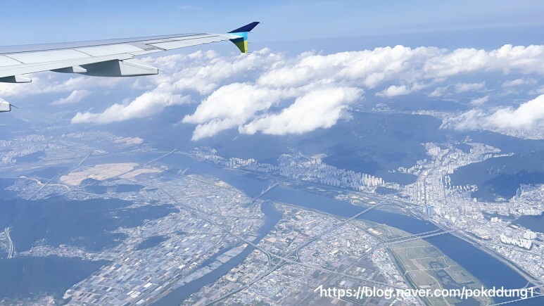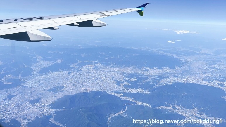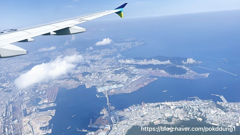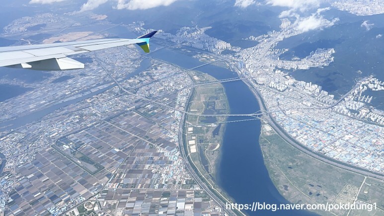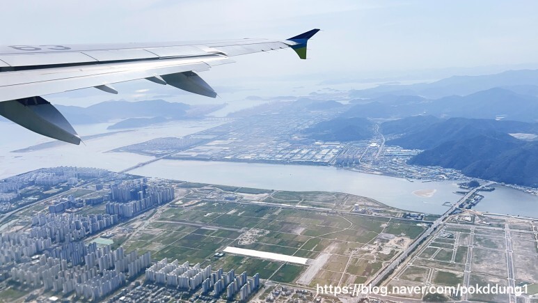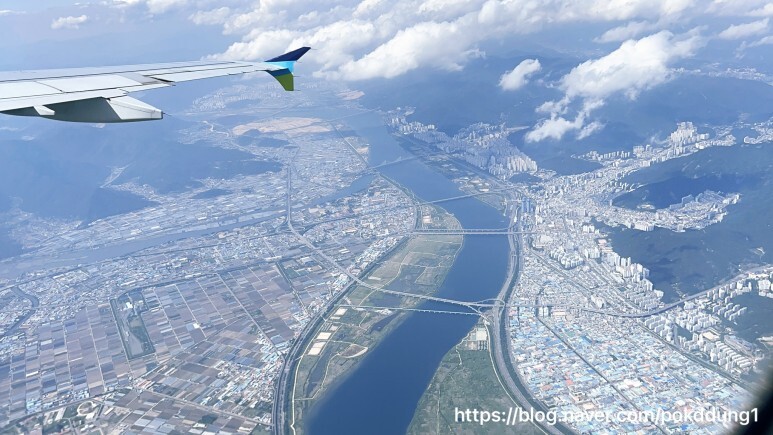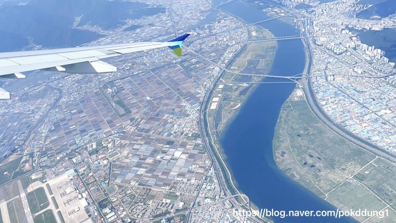 우리 비행기는 다시 김해공항 상공을 지나고 있었다.