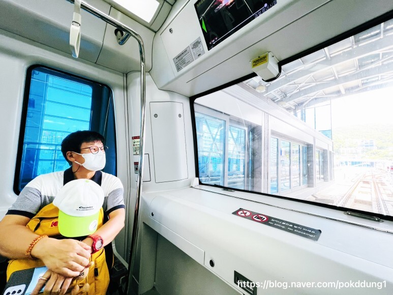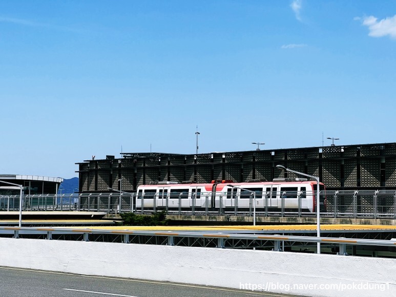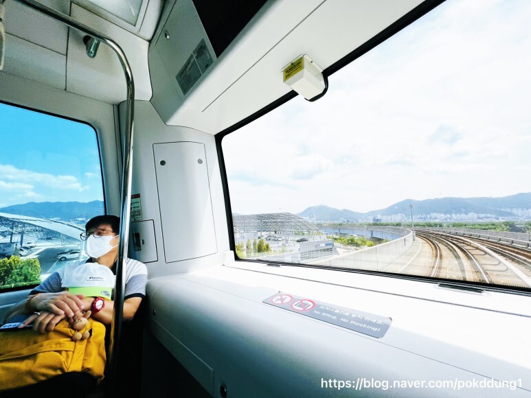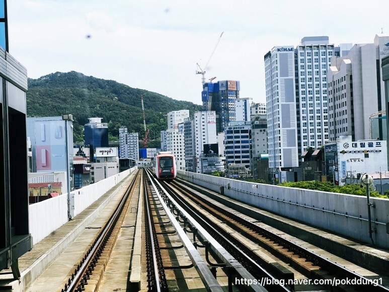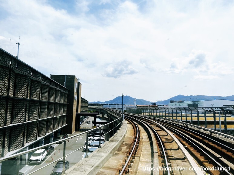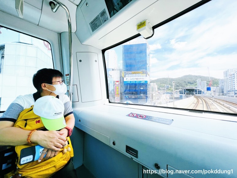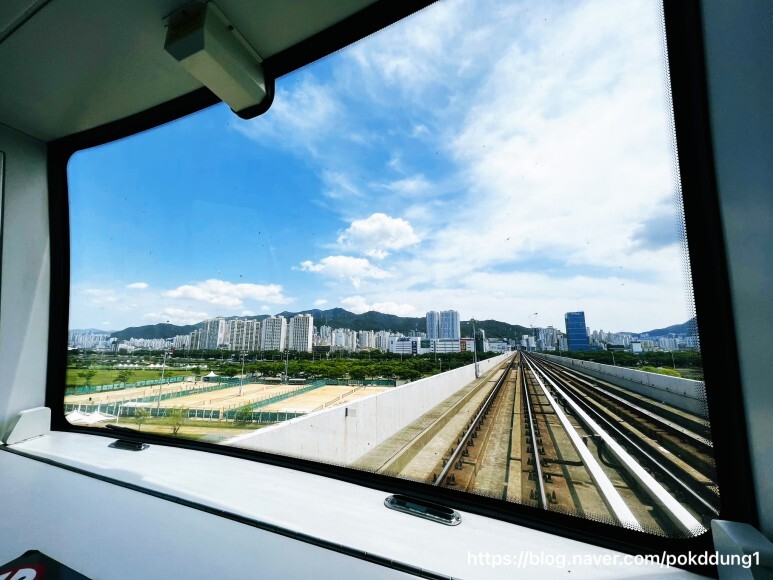 경전철의 끝자리에 앉으니 시원한 풍경을 볼 수 있었다. 오전엔 날이 흐리더니 부산을 떠나려니 파란 하늘이 고개를 내밀었다.