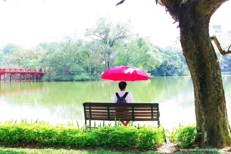 오늘도 아침부터 부슬부슬 비가 내렸다. 우기로 들어가는 시기라 아침마다 비가 내리는 것 같다. 그래서 호텔에 비치된 우산을 들고나갔다. 오늘은 어디를 갈까 고민을 하며 또 호안끼엠 호수 쪽으로 걸어갔다. 실질적으로 오늘이 이번 여행의 마지막 날이었다. 어제 여행을 시작했는데 벌써 오늘이 여행의 마지막 날이었다. 3박 4일의 여행이라 가는 날 오는 날을 빼고 나니 여행을 할 수 있는 날은 이틀밖에 되지 않았다. 숙소에서 나온 지 얼마 되지 않아 비가 그쳤다. 비가 올 때는 우산이 쓸모가 있었는데 비가 그치니 애물단지로 바뀌었다.
