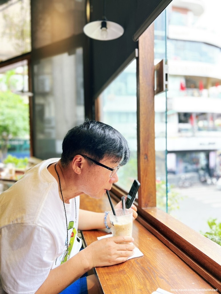 밀폐된 공간이 아니다 보니 우리 테이블 옆 손님은 계속해서 담배를 피웠다. 걷다 보면 베트남 로컬 카페의 경우 대부분 자유롭게 흡연을 할 수 있는 것 같았다. 담배 연기가 싫으신 분은 체인점 카페인 하이랜드 같은 곳을 가시는 것이 더 좋을 것 같다는 생각이 들었다.