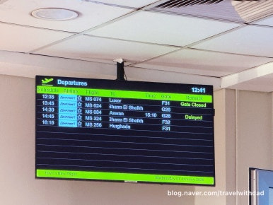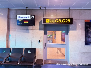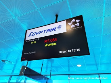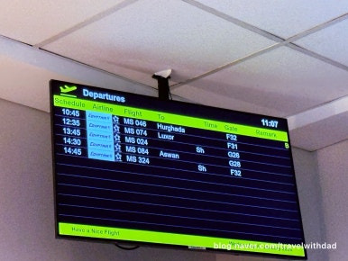 탑승시간보다 여유롭게 라운지에서 나와 게이트 앞으로 갔다. 게이트 앞으로 가니 안내판에 아스완행 항공편 탑승구를 가리키는 안내가 적혀 있었다.