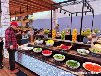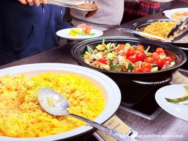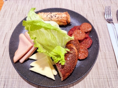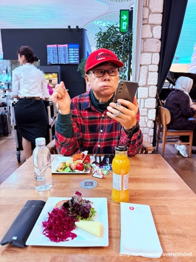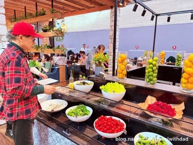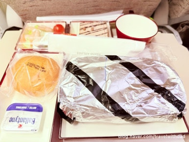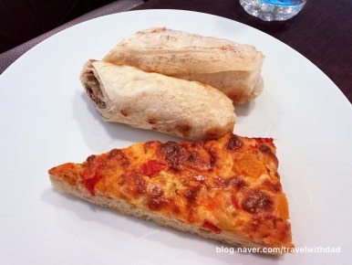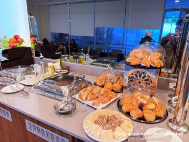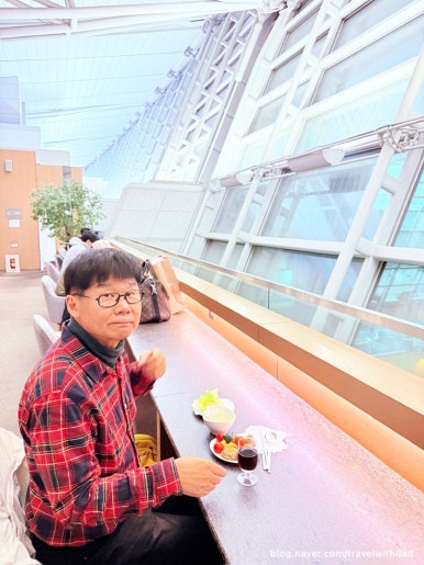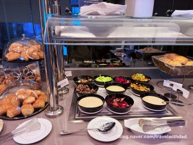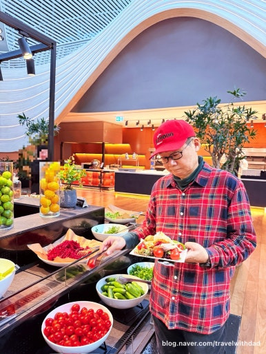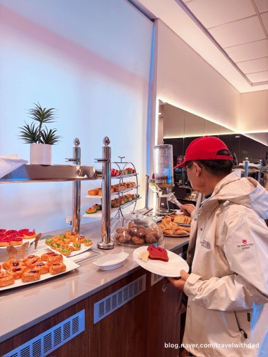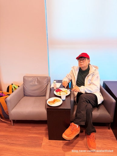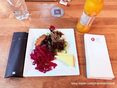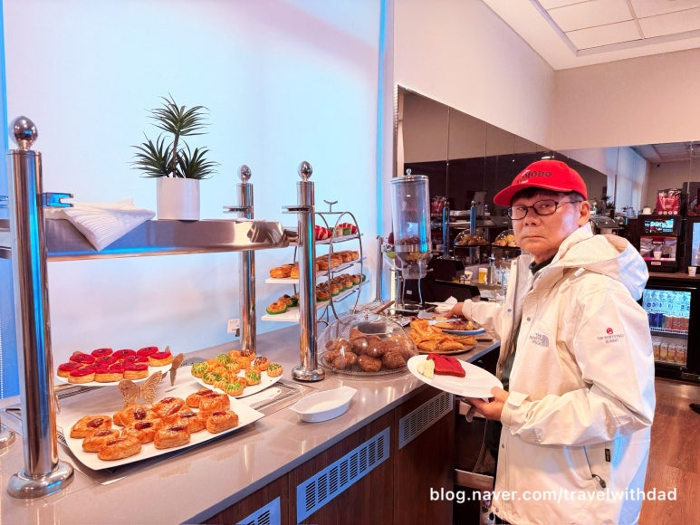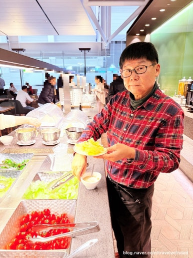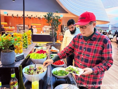 아침을 먹고 왔는데 새로운 음식들을 보니 갑자기 허기가 졌다. 그래서 빵도 이것저것 가져다 먹고 샐러드도 먹으며 점심을 이곳에서 대신 먹었다. 그런데 탑승 시간이 30여 분 정도 지연되었다. 어쩔 수 없이 이곳에서 조금 더 시간을 보내야 했다.