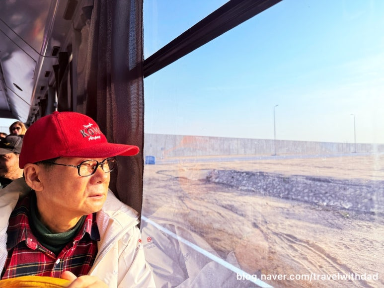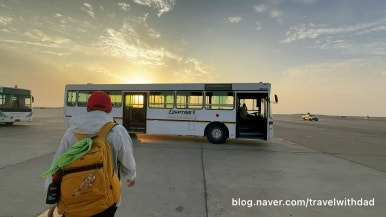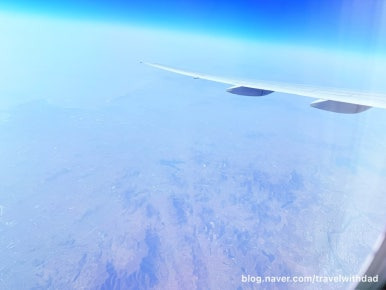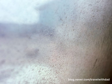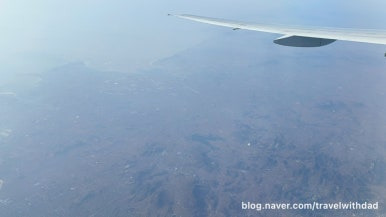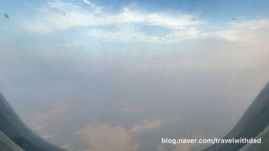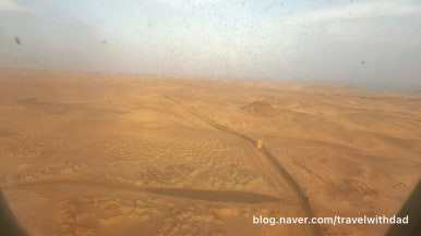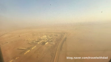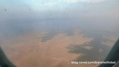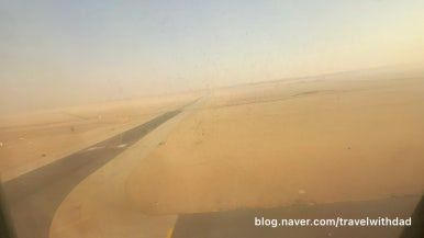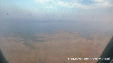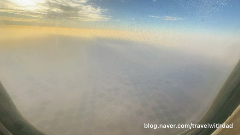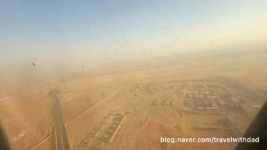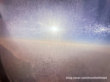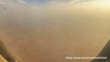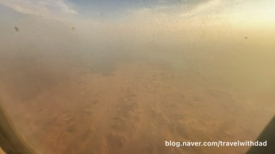 창문 너머로 밖을 보는데 역시나 창문이 깨끗하지 않았다. 사막이라 그런지 창문에 모래바람에 실려온 모래 먼지가 많이 묻어 있었다.