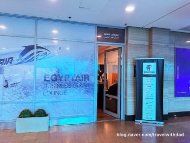 이집트 항공 라운지를 찾았다. 라운지가 한 군데 있는데 안과 복도 이렇게 두 곳을 사용하는 것 같았다.