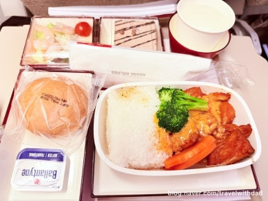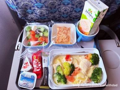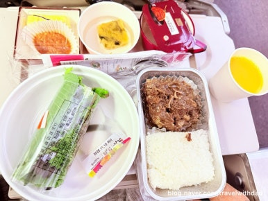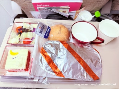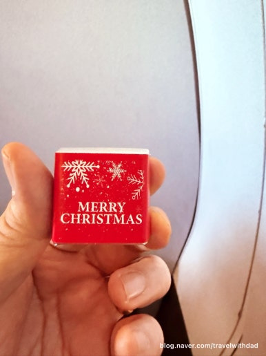 한 시간 남짓의 짧은 비행이라 기내식은 제공되지 않고 간단한 과자와 초콜릿, 물이 제공되었다.