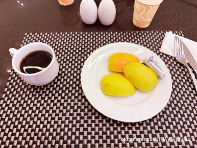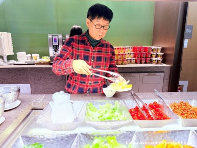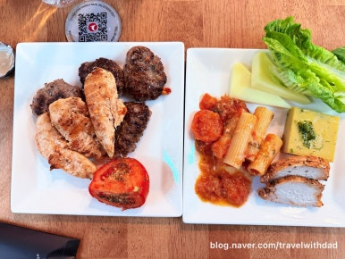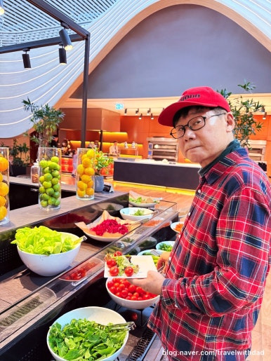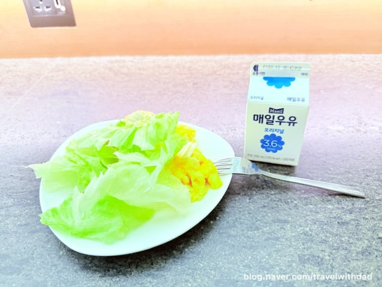 아직까지 시차가 적응이 안 되는지 새벽마다 아침 일찍 일어나 아침을 먹으러 왔다. 아침 이른 시간이라 입맛이 없기는 했지만 접시 가득 듬뿍 과일과 채소를 담아 왔다.