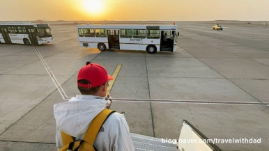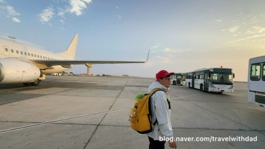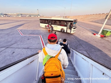 드디어 아스완 공항에 도착했다. 보딩 브리지가 아닌 버스를 타고 터미널까지 이동을 했다.