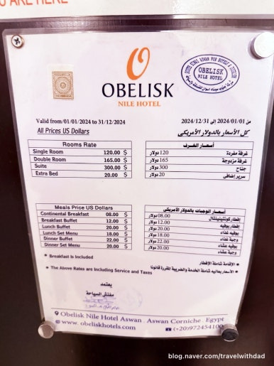 오벨리스크 나일 호텔에서 총 3일을 지낼 예정이었다. 각 방이 하나의 단독 건물로 되어 있는 점이 마음에 들었다.