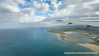 비행기가 고도를 낮출수록 땅의 모양이 손에 잡힐 듯 가까워졌다.